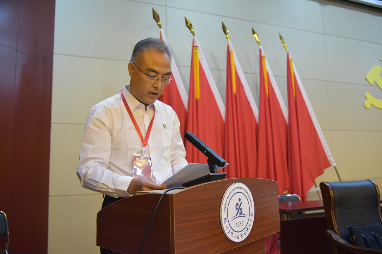 会议听取审议并通过了谭红玲同志作的中国共产党徐州生物工程职业技术学院第二次党员代表大会代表资格审查报告。报告指出,全校10个选举单位选出的106名代表,均符合《中国共产党章程》和学校党委关于代表选举工作通知的有关规定,符合代表条件,代表资格全部有效。